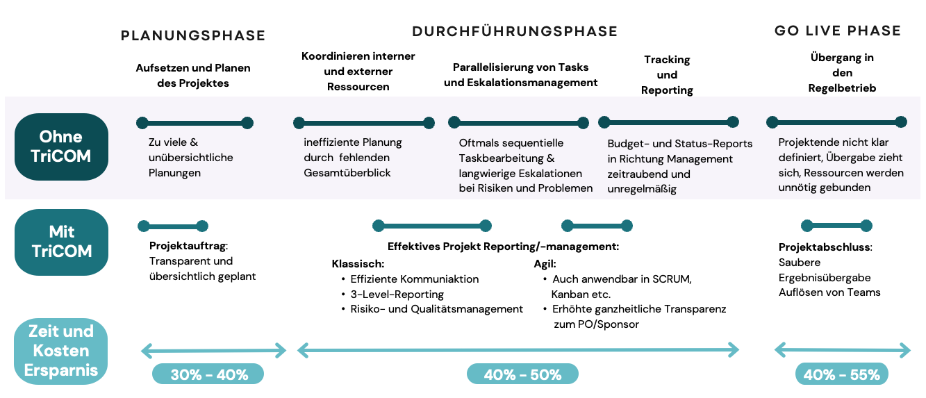 Anpassbarkeit: TriCOM ist mit verschiedenen Projektmanagementstandards wie PRINCE2, PMI und anderen kompatibel, was es zu einer flexiblen Lösung für Projekte jeder Art macht.